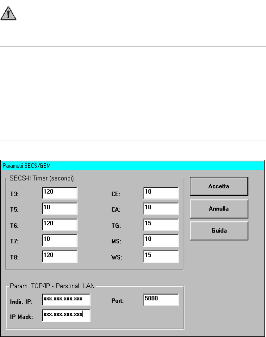 Å Per modificare i parametri SECS (vedi paragrafo 12.2.2.3), cliccare sul pulsante Parametri