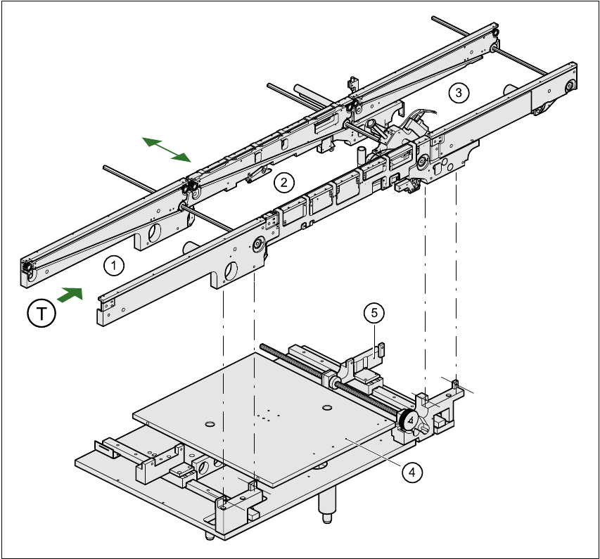 (5) Regolazione larghezza T Direzione di trasporto CS 1