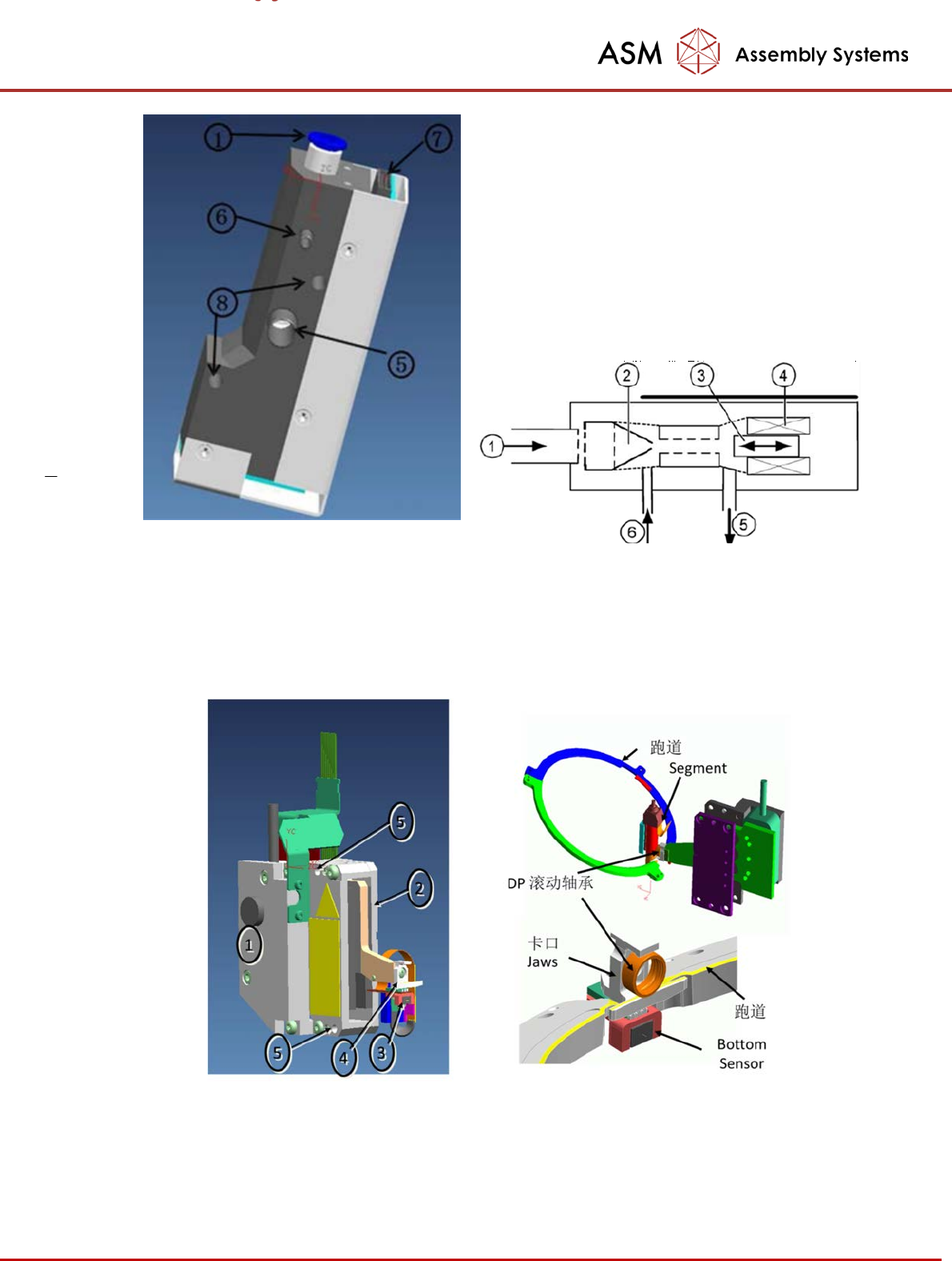 - 104 - 取料 / 贴片位真空发生器 结构,原理图 2. Z 轴模块 Z 轴马达驱动模块结构图 Z 轴工作时,线性马达②带动卡 口( Jaw ),卡口④钩着 Segment 上的滚动轴承 ,拉着吸嘴 上下 运动。光栅读数系统①测量 Z 轴的高度。 Bottom Sensor ③判断取料时吸嘴有无碰到器 件,贴 片时器件是否碰到线路板 。⑤是 Z 轴模块的固定框架。 ① 压缩 空 气入口 ② Venturi 气嘴 ③ 活 塞堵气杆 …