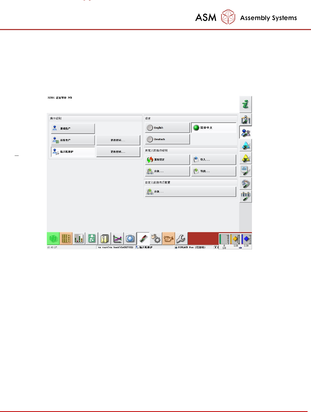 首先登陆到贴片机维护用户