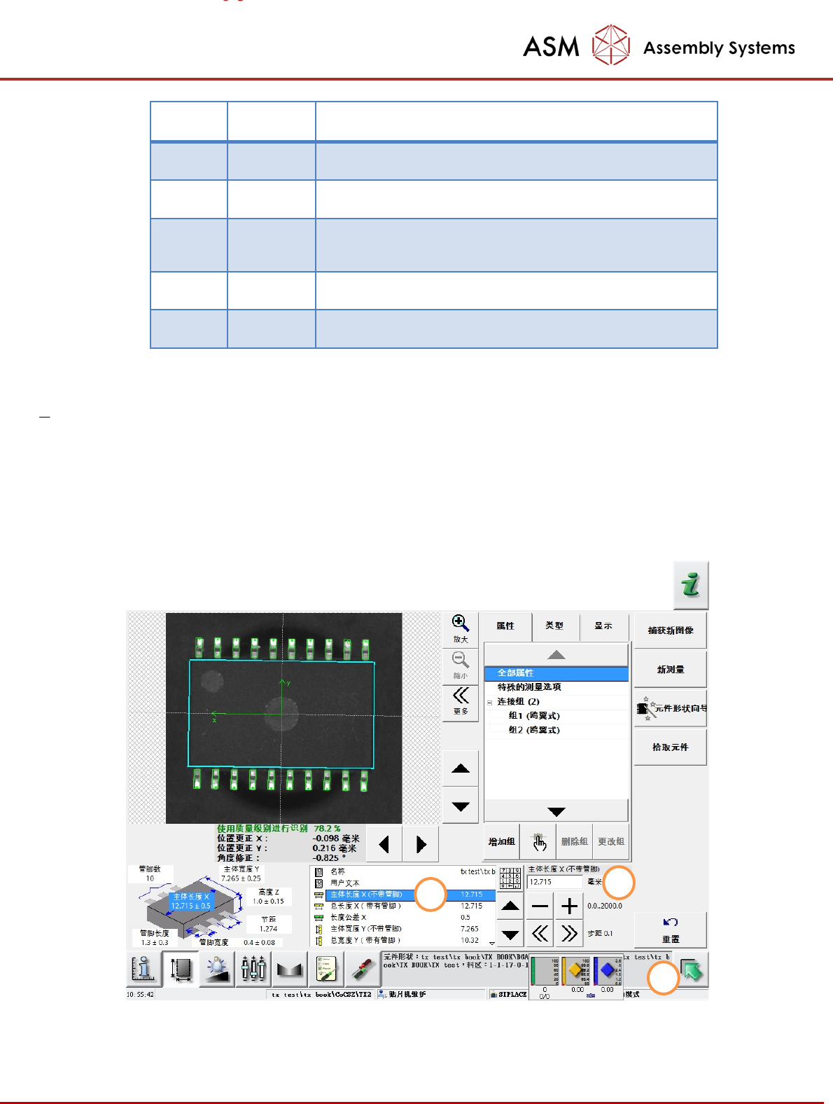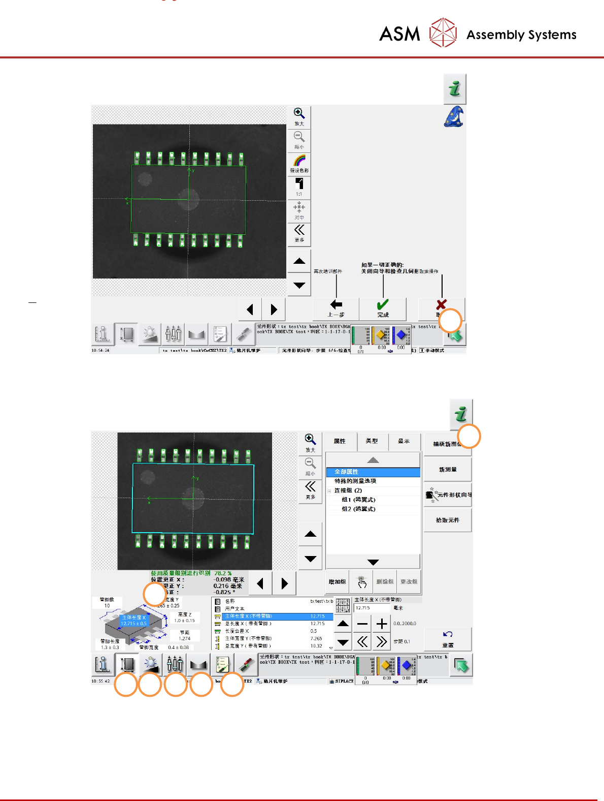 - 63 - ( 8 ) 单击几次“ Captu re new image (捕获新 图像)”按钮 (1) ,如果 X- /Y - / 角度值在某 些 图像捕获期间未发生变动,且质量也满足要求,则表示该元件形状的识别正确无误 (2) 。 ( 9 ) 为 了正确的识别元件形状,您可能需 要在其他视图中更改更多的 值(按钮 ( 3) 到 (7) ),这部分内容有专 门的课程讲述,这里我们不 做说明了。 1 1 2 3 4 6 5 7