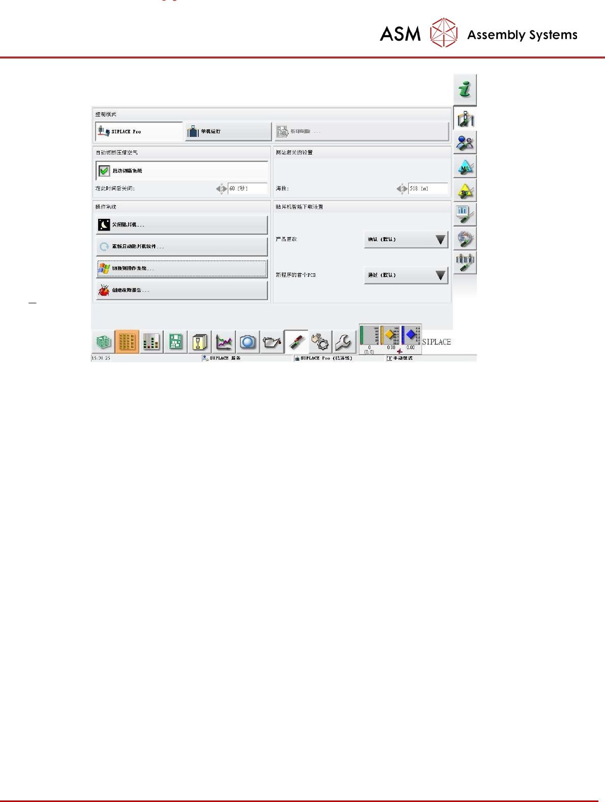a) 控制模式: 机器有两种控制模式 SIPLACE Pro 和单机运行, 默认使用 SIPLACE