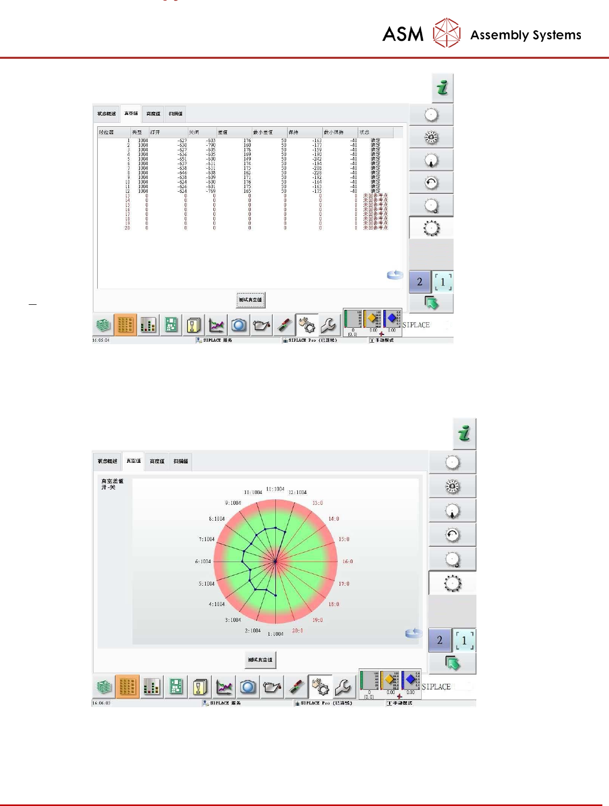 也可以切换画面,将显示如下图。测量值应位于绿色区域,若位于红色区域,则代表该吸嘴