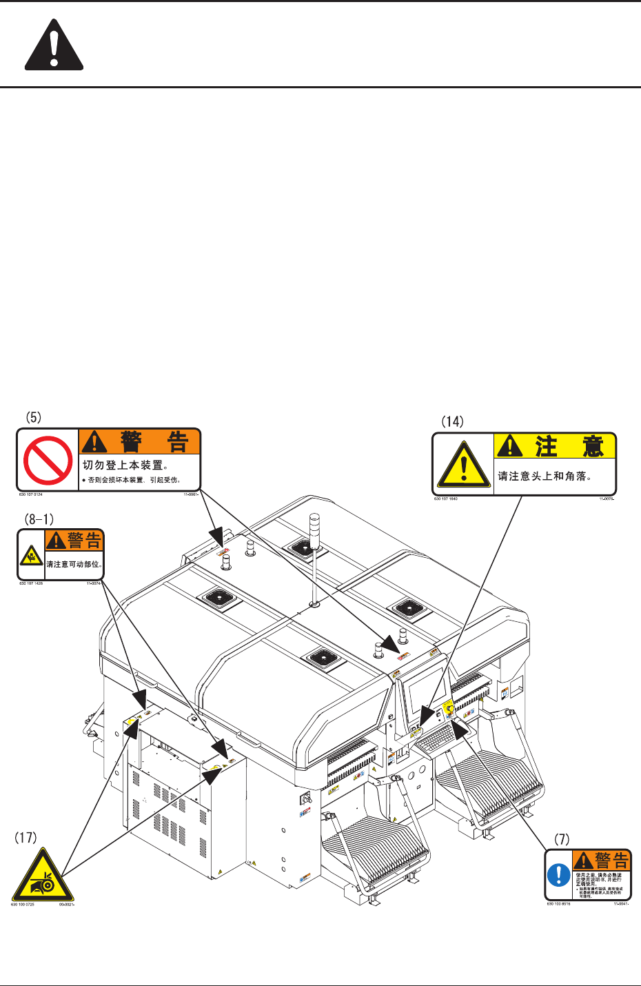 警告标签因破损无法看清楚内容时,请联系本公司服务部门更换新的标签。