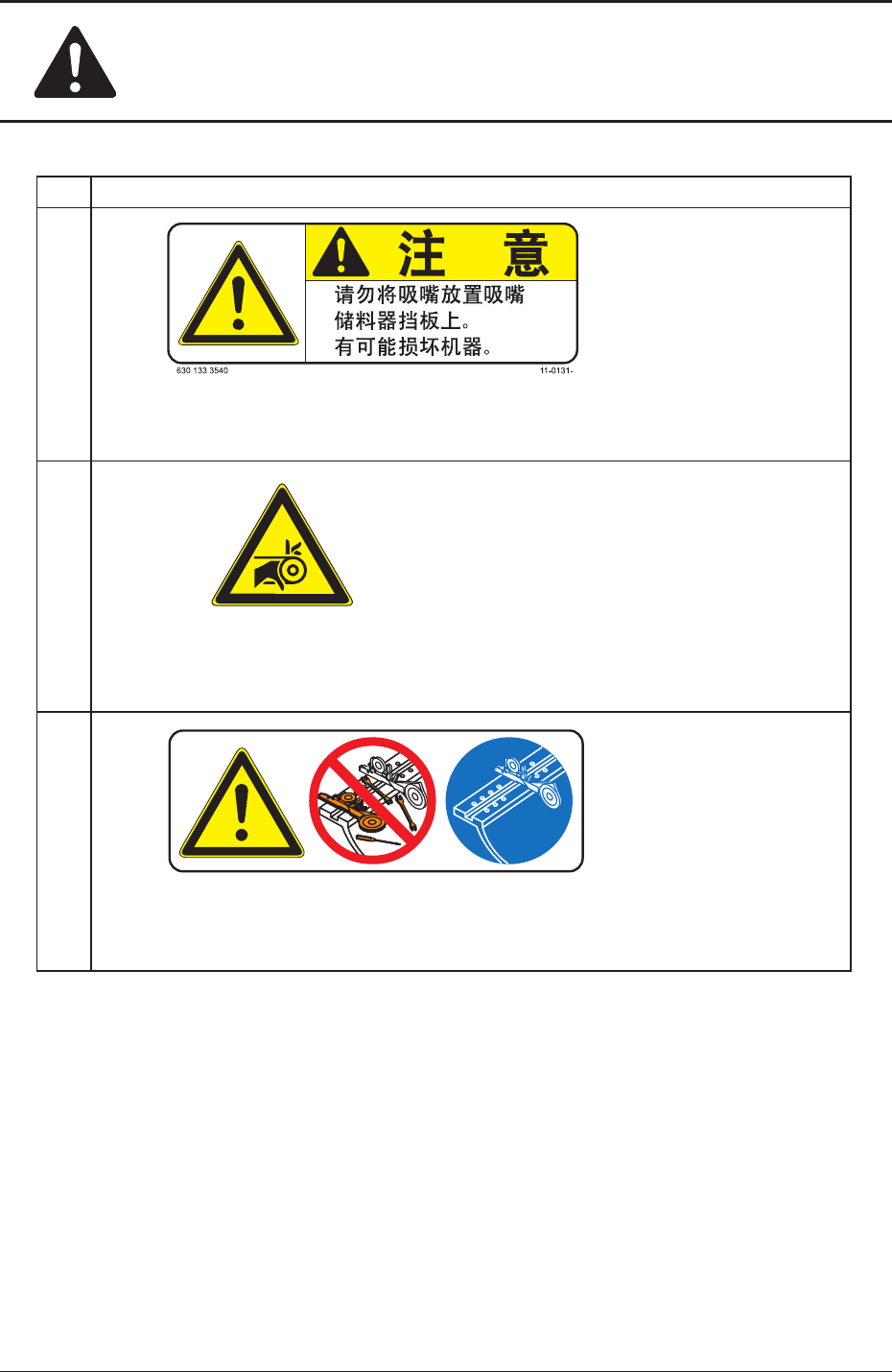 安全 - 21 为了使用上的安全起见 为了使用上的安全起见 为了使用上的安全起见 为了使用上的安全起见 为了使用上的安全起见 No. No. No. No. No. 警告标签及其说明 警告标签及其说明 警告标签及其说明 警告标签及其说明 警告标签及其说明 ( 1 6) 说 说 说 说 说 明 明 明 明 明 z 请正确安装吸嘴到吸嘴储料器上。 若将吸嘴放置到吸嘴储料器挡板上进行运转,就有可能损坏机器。 ( 1 7) 说 说 说 说 说 …