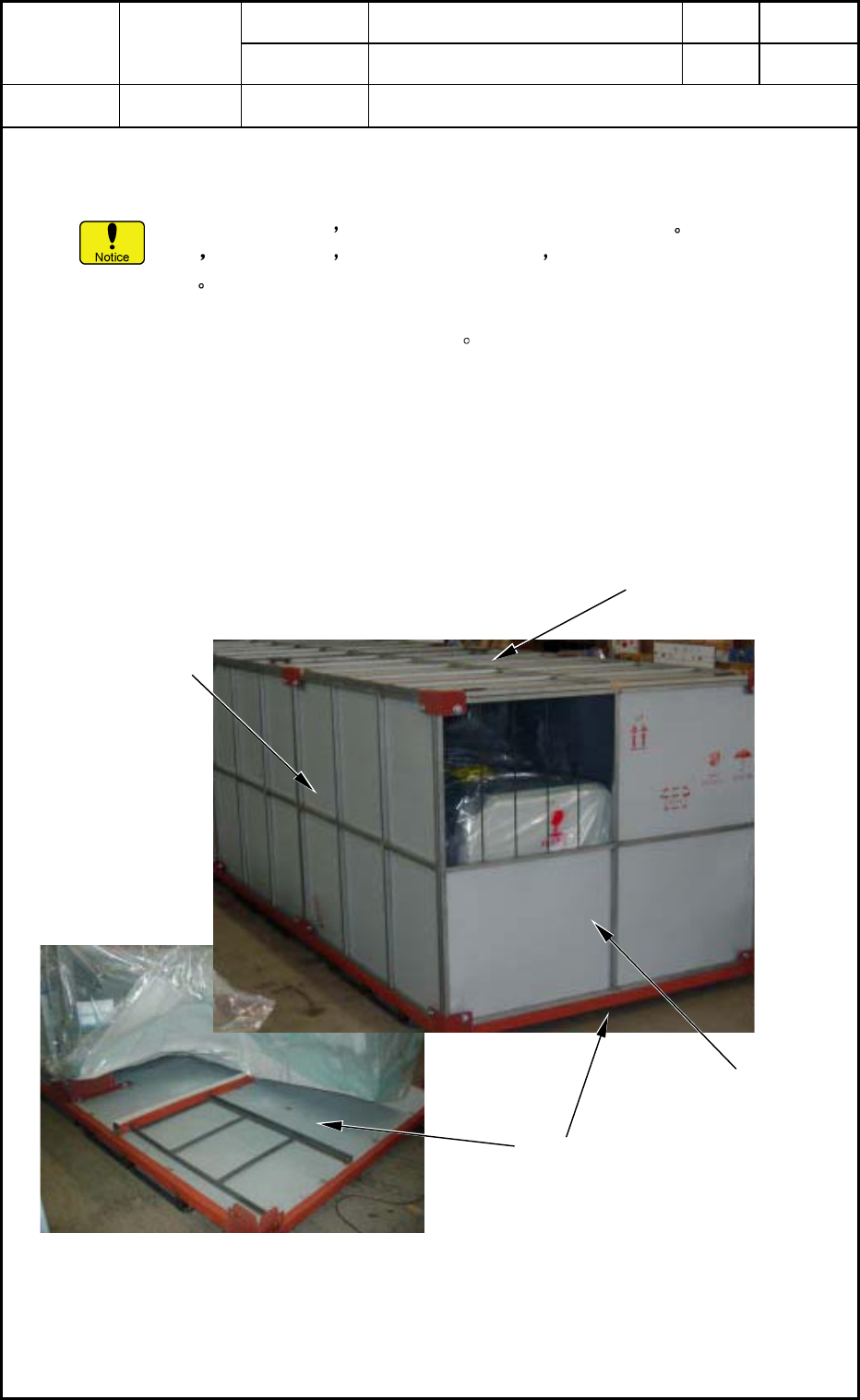 装置名称 型号名称 贴片机 GXH-1 模块名称 单元名称 项 目 第十八章 包装作业 2. 包装步骤 页次 18-11 修订 0601-001 2.2.1 顶部面板的拆卸 (1) 请将链条或金属丝挂在拆卸面板的吊钩上,防止顶部面板掉落。 (2) 固定顶部面板的螺栓:拆卸 12 个顶部面板固定螺栓(M16),使用 4 处吊钩,在分 为两部分的顶部面板装上链条或金属丝,往上吊起来拆卸。 (3) 剩下的顶部面板同样往上吊起来拆卸。 Fig.…