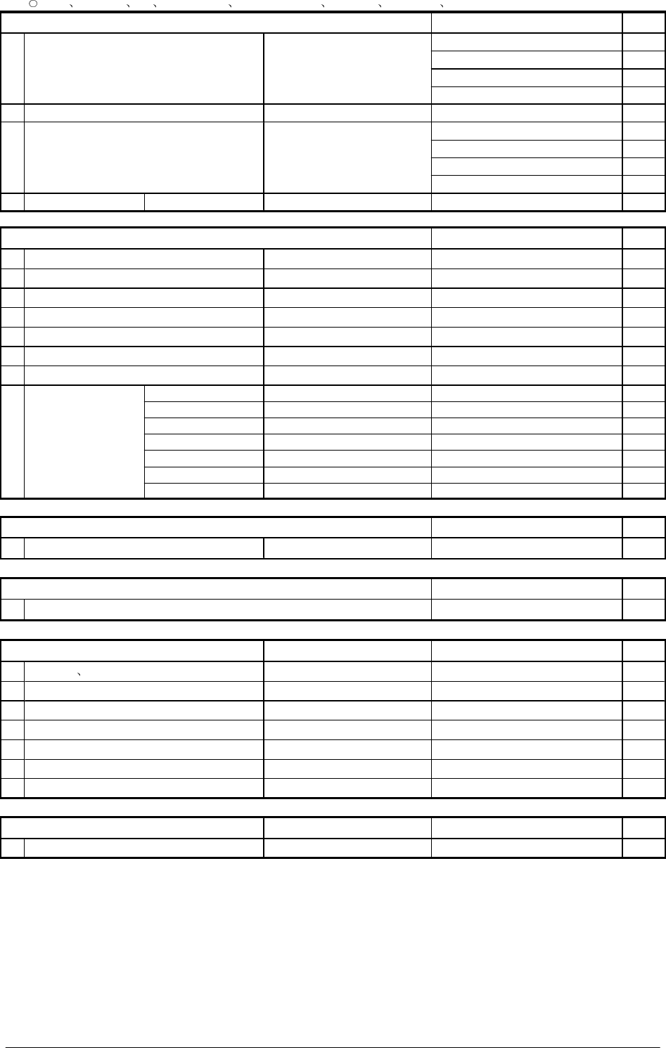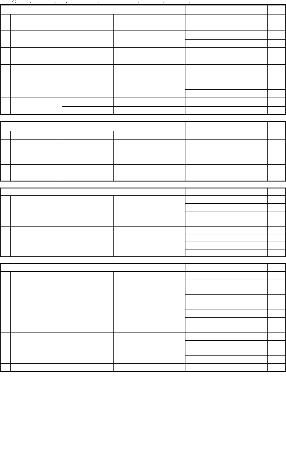 19-4 0602-001 状态 : 点检良 A: 需要调整 清扫 B: 需要更换元件 C: 需要 日后调整更换 D: 需要注油 AA: 调整 结束 BB: 元件更换结束 9 9 9 9 切割器部 切割器部 切割器部 切割器部 备注 状态 1 切割器箱内清扫状 况 模块1 : 切割状况确认 模块 2: 模块 3: 模块 4: 2 O 环的确认 3 切割器位置偏离确 认 模块1 : 模块 2: 模块 3: 模块 4: 4 注油确认 直线导…
