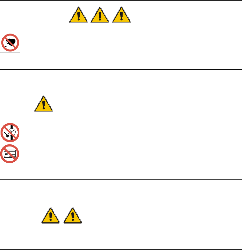 ○ X 轴和 Y 轴的永久磁铁具有极大的磁场。佩戴心脏起搏器的人员不得在永久磁铁附