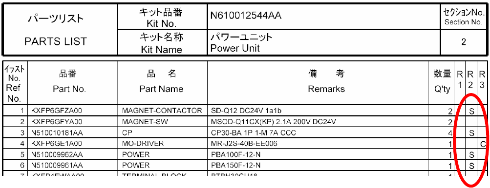 また、R3 欄に‘C’の記号が記載されている部品は「パラメータ設定」されているドライバーなどのコントロ
