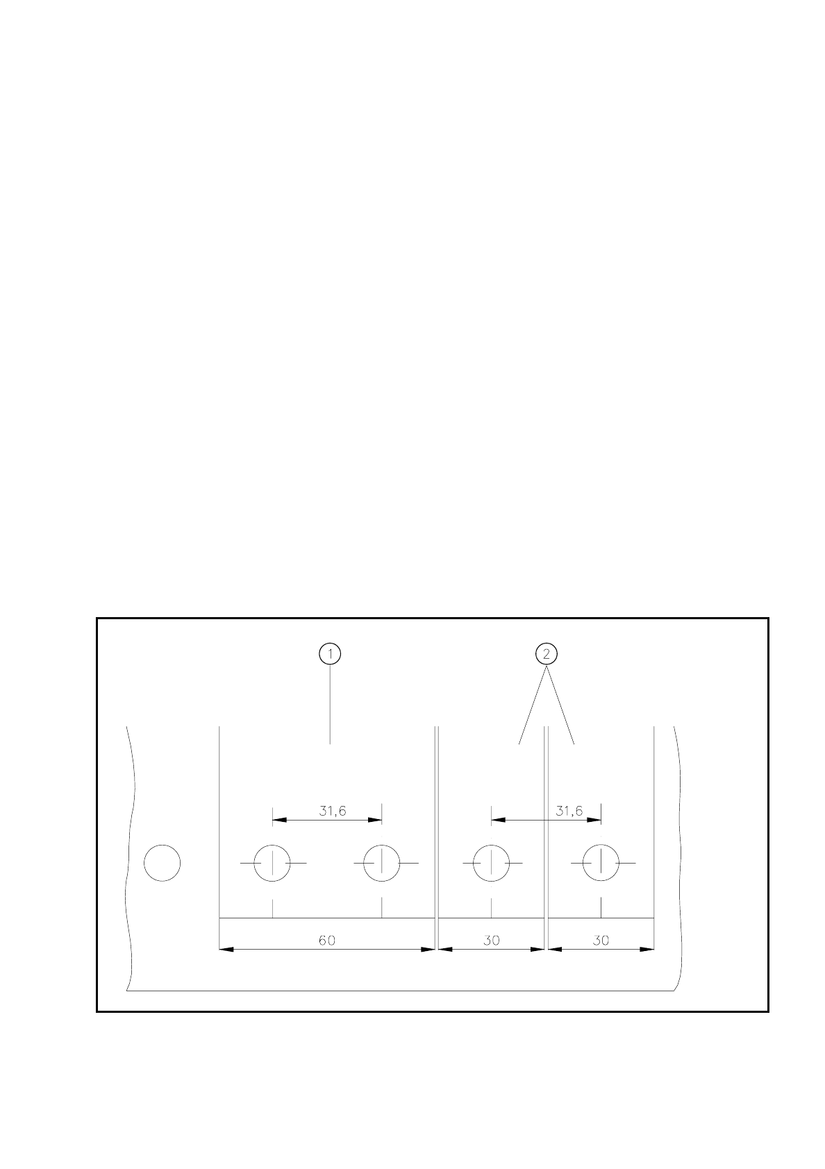 1) Syöttömoduuli leveydeltään 60 mm 2) Syöttömoduuli leveydeltään 30 mm