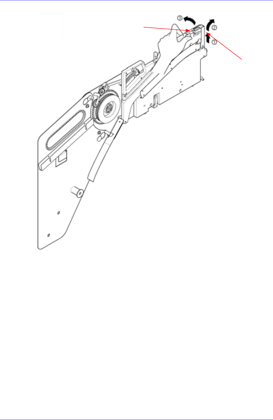 Operation of the T ape Feeder 2-5 Figur e 2-5. Lifting the ta pe guide of the 12mm tape feeder Figur e 2-6. Lifting the ta pe guide of the 16-56mm tape feed er T ape Guide Locke r T ape Guide Locke r