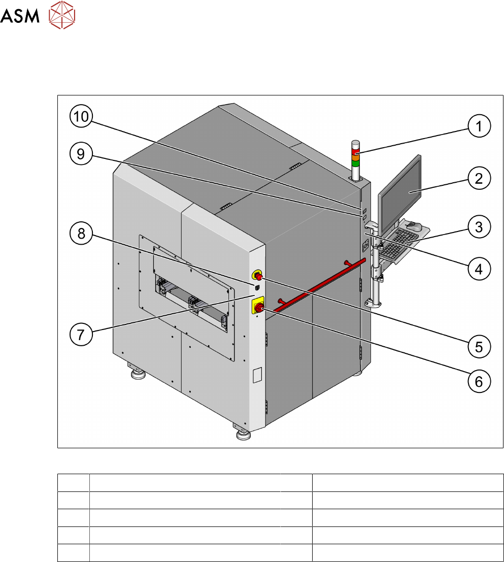 5 Working with the machine 5.1 Controls and displays 76 Instruction manual ASM ProcessLens 03/2021 5.1 Controls and displays 5.1.1 Overview Fig.50: Controls and displays 1 Tower lamp with buzzer 2 LCD monitor 3 Keyboard…
