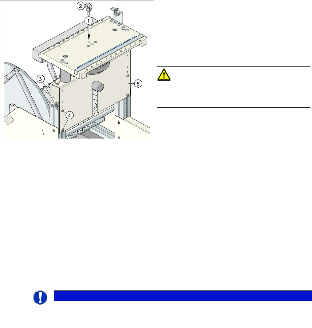 ► Screw the eyebolt into the M12 hole provided (1) on the component trolley table.