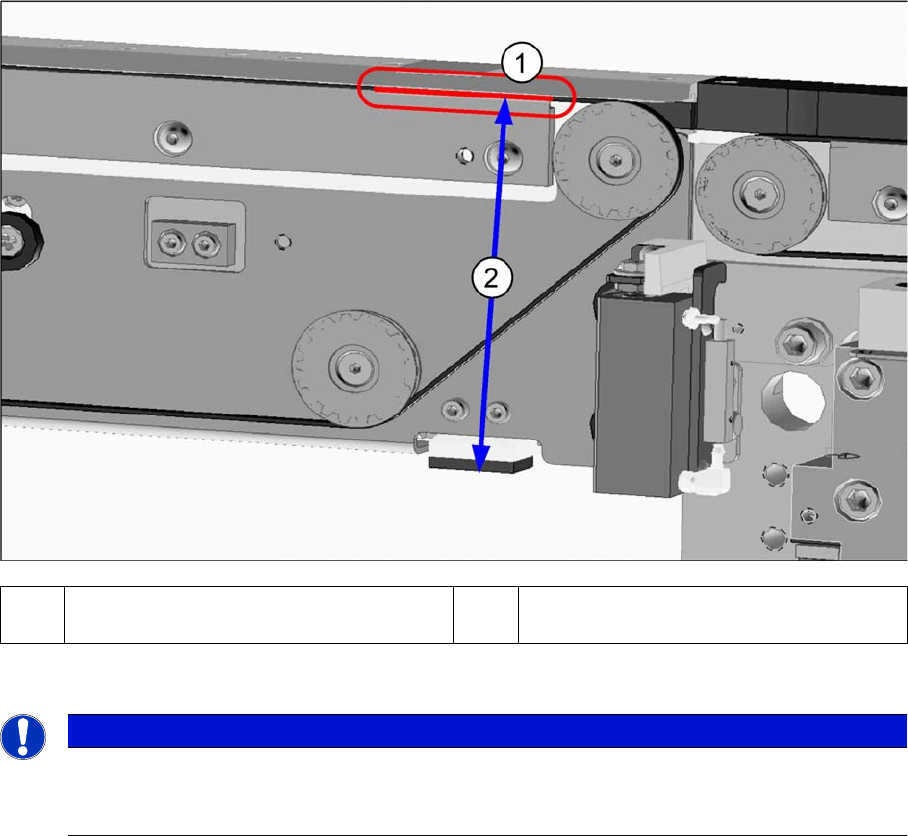 If the gap is larger than 0.1 mm, the distance determined between the belt and clamping edge on the