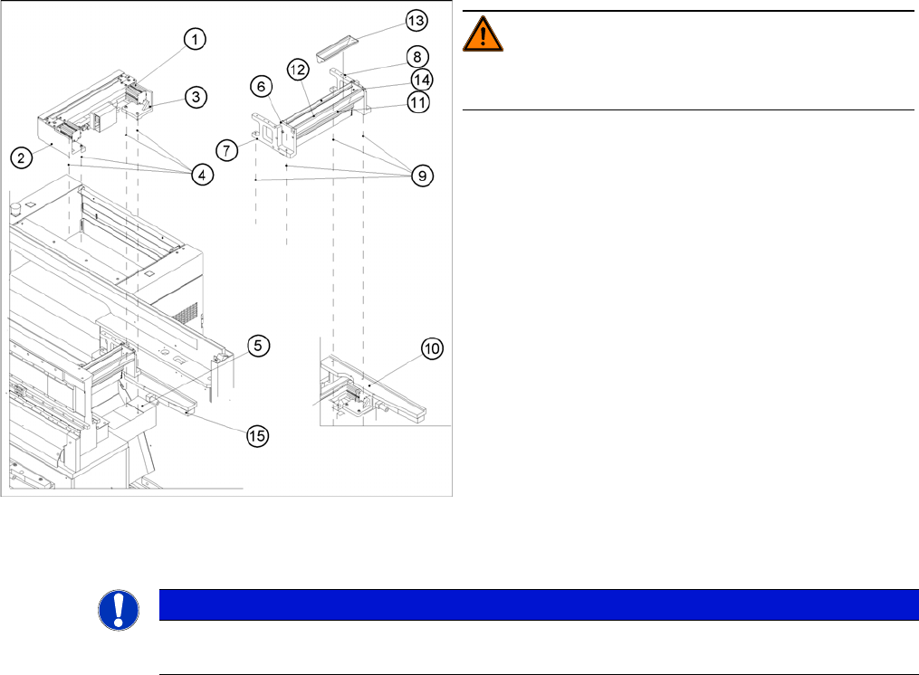 ► Make sure that the following warning signs are on the cover plate over the moveable blade (see op-