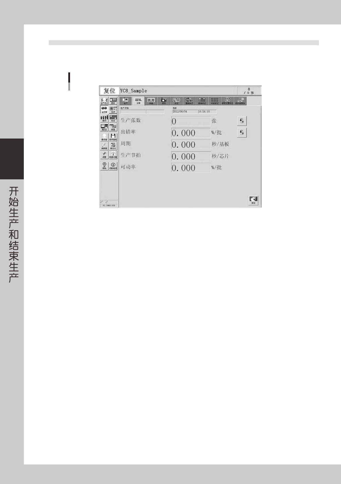 此画面显示当前生产的基板数量、生产状况等即时信息。生产过程中,始终打开此画面,便于生产。如切换了生
