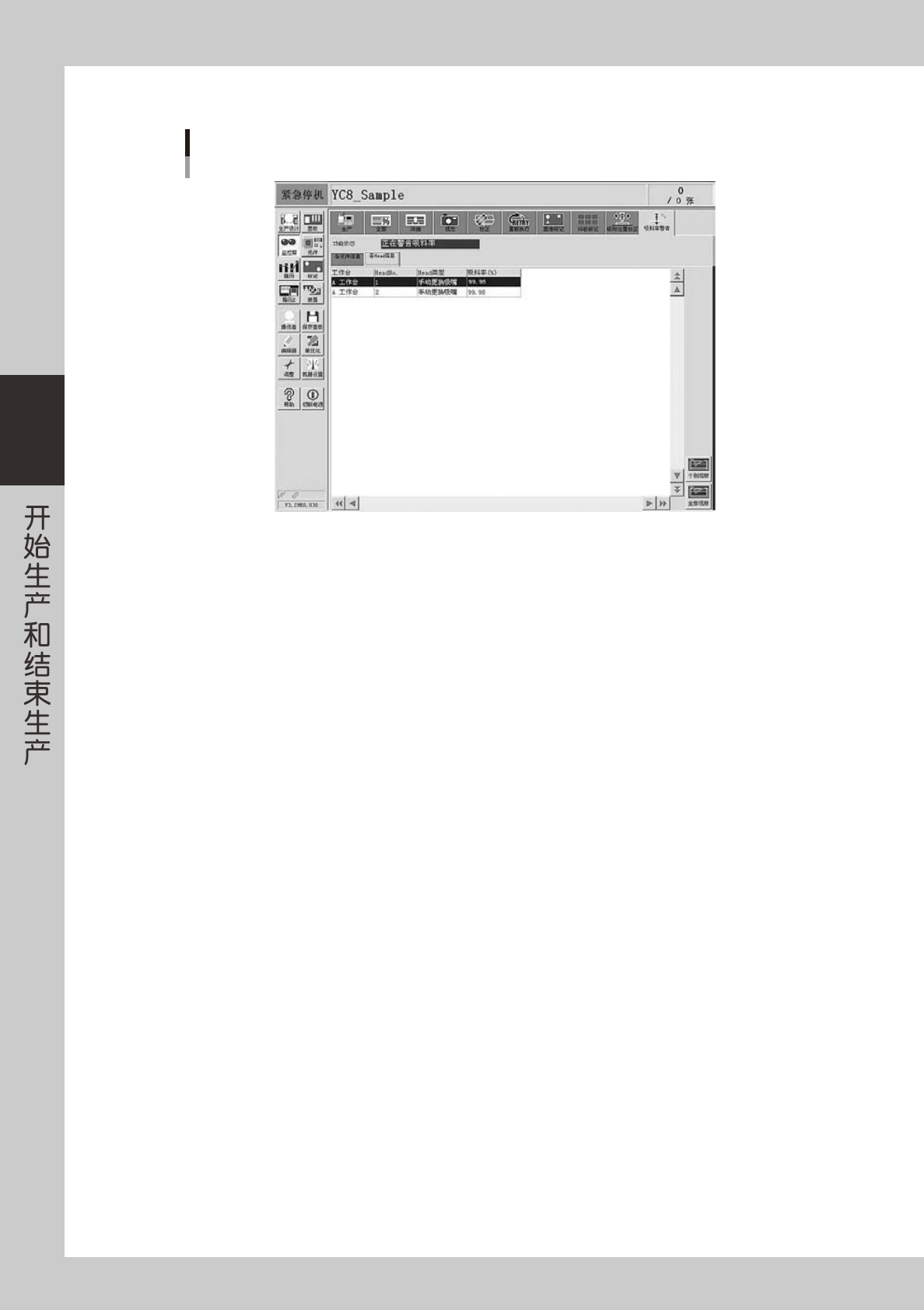 吸料率在贴装组的贴装完成后,立即更新。但是如果没有使用该元件或该贴装头,该行不会显示。运行中的吸料
