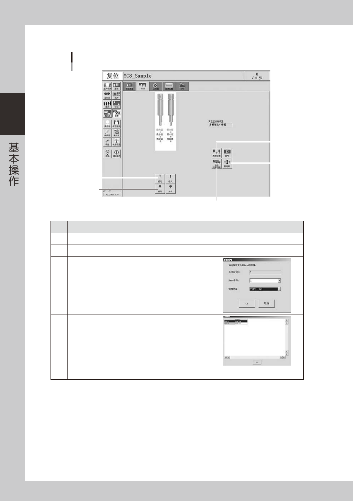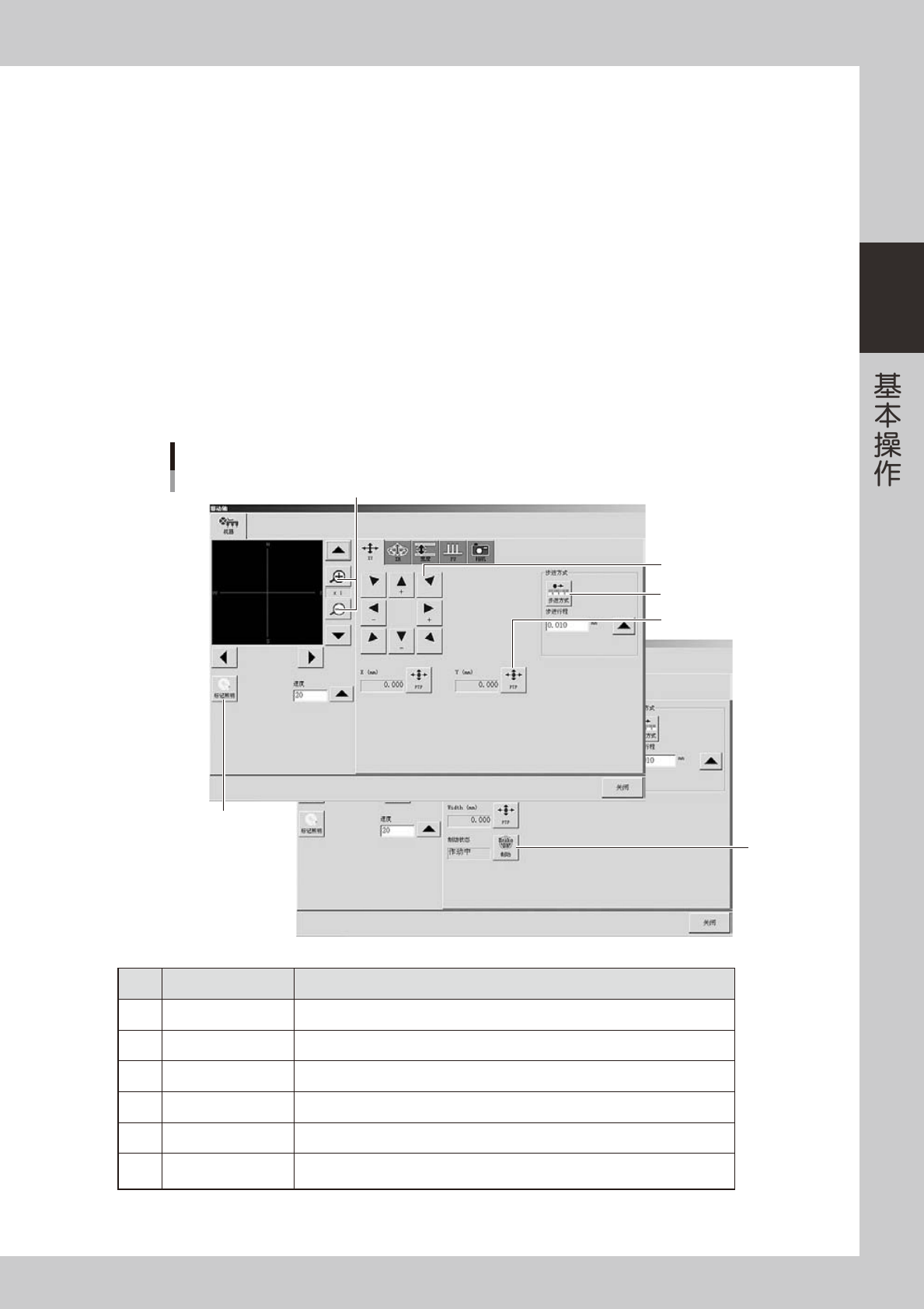 2-13 2 4. [ 移动轴 ] 按钮 用手动方式移动轴时使用。使用方向按钮或按 [PTP] 按钮,输入数值,即可使轴移动。 5. [ 左 ]、[ 右 ] 按钮 使电机向左或向右高速转动。 6. [ 低速 左 ]、[ 低速 右 ] 按钮 使电机向左或向右低速转动。 7. [ 出口挡板 ] 按钮 使传出的基板在出口处停下时使用。 8. [ 顶板 ] 按钮 输入基板厚度,从下方 ( 基板背面 ) 固定基板。 9. [ 基板固定夹 ] 按钮…