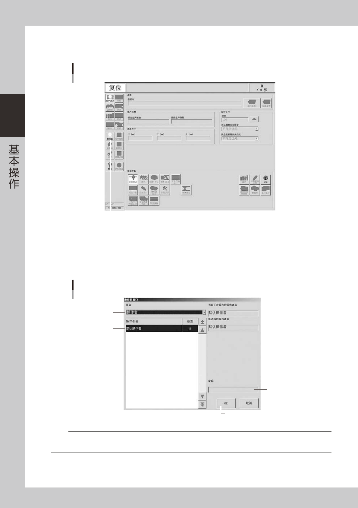 即只允许操作基本内容。级别可根据需要变更。此外,通过设定密码和操作级别,还可以增加操作者或指定操作许可项目。