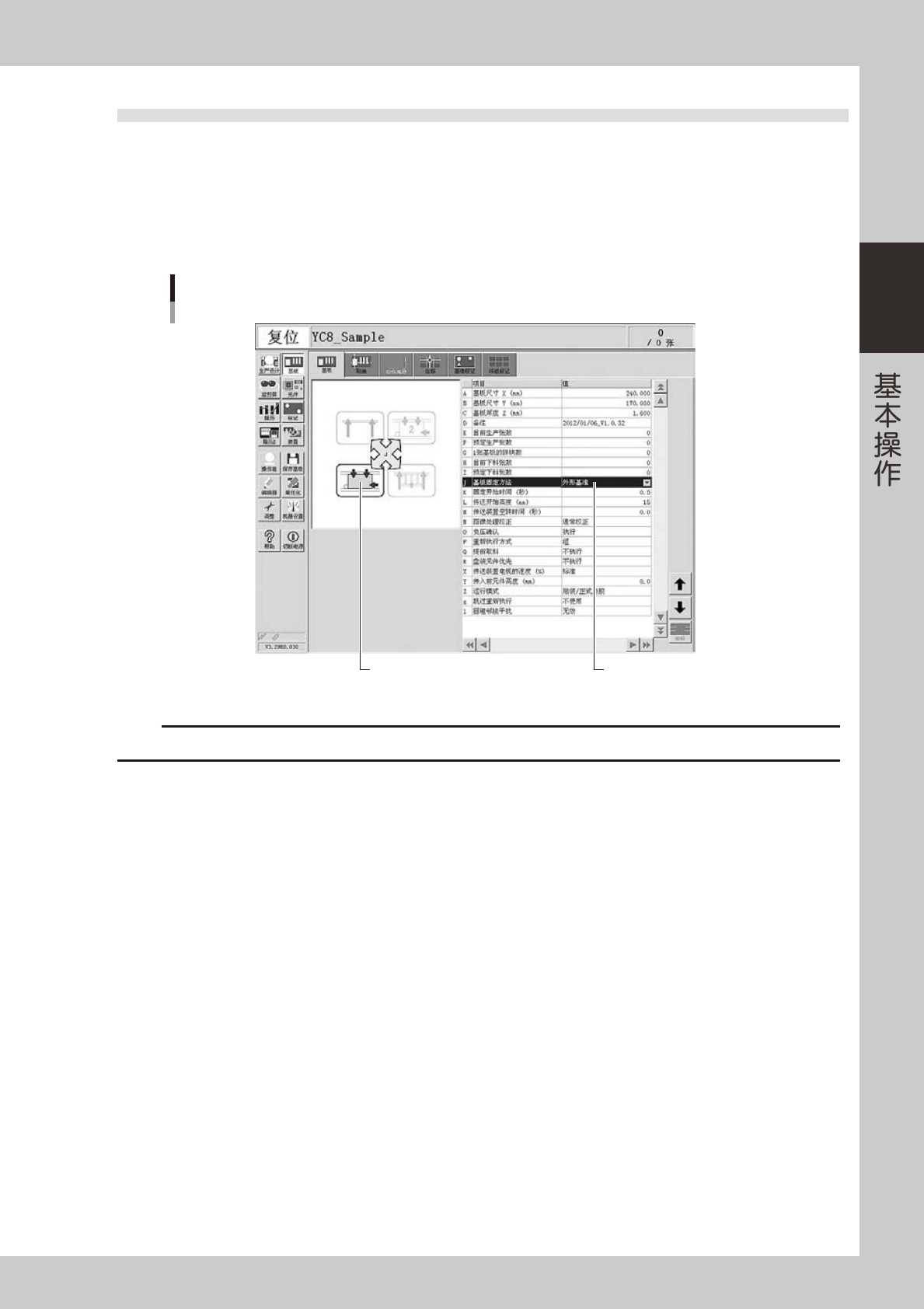 一般,基板固定方法设定为外形基准。顶起基板的边缘,用基板压板夹住进行固定。