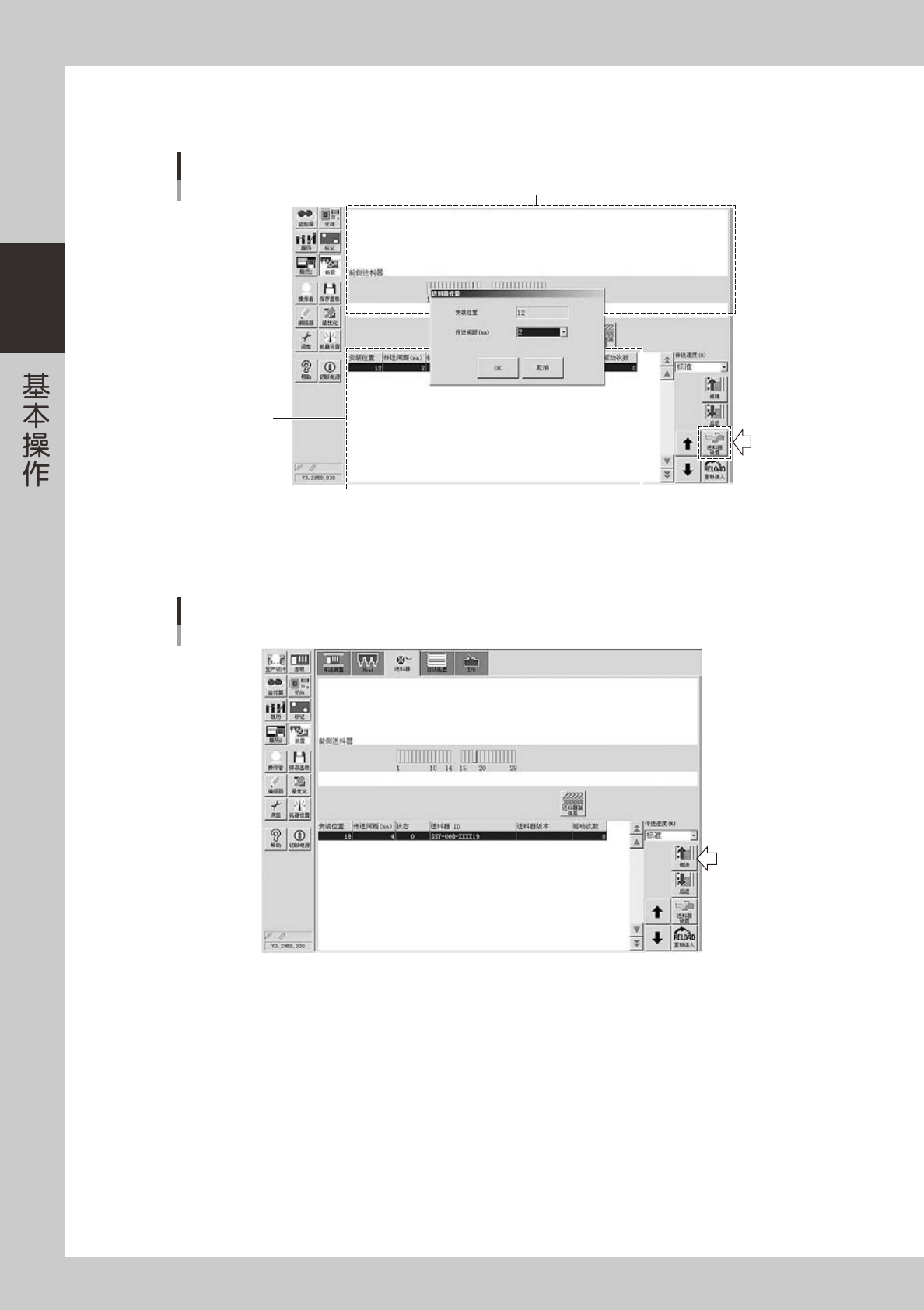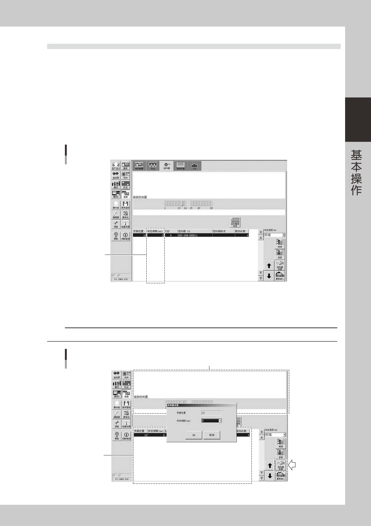 2-31 2 4.2 料带传送间距的设置 下面,以「机器设置」-「选项设置」画面中「指定送料器间距」的设置为「在送料器中设置」为前提,介绍料带 传送间距的设置方法。 4.2.1 在贴片机上设置 1 打开送料器画面。 边确认送料器列表边预先安装好送料器。按 [ 装置 ] 按钮,选择「送料器」选项卡,打开送料器画面。 2 确认对象送料器的料带传送间距。 在送料器画面的送料器列表中确认。 确认间距 传送间距 26216-N8-00 3 打开送…