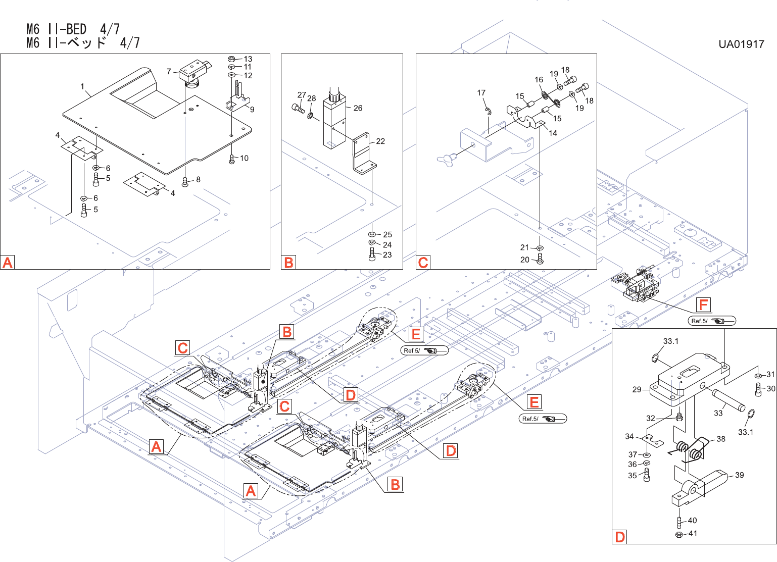 M6II-BED3/7 M6II -ベッド 3/7 UA01917 No. Drg.No.&CodeNo. Q TY Description Rating Materials Remarks 番号 図番 &コード 番号 個数 品名 規格 材質 備考 78 N4045A 6 S CREW,HEXSOCKETSET ネジ六 角穴 止め M06 X005ク ボミサキ FE 80 H5326A…