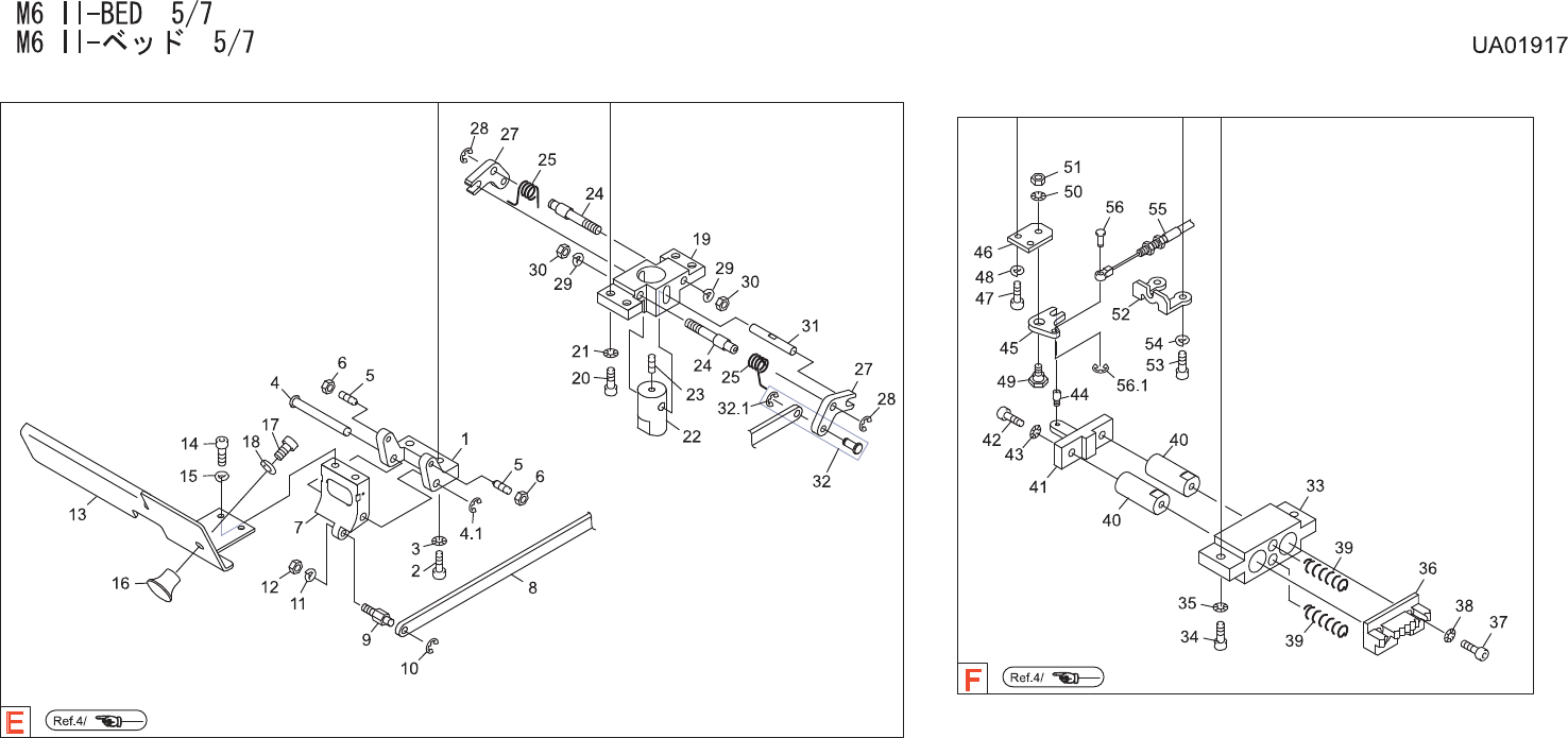 M6II-BED5/7 M6II -ベッド 5/7 UA01917 No. Drg.No.&CodeNo. Q TY Description Rating Materials Remarks 番号 図番 &コード 番号 個数 品名 規格 材質 備考 1 PT00101 2 BKT BKT FE 2 H5299A 4 BOLT,HEXSOCKET ボルト 六角 穴 M05X012 FE 3 W…