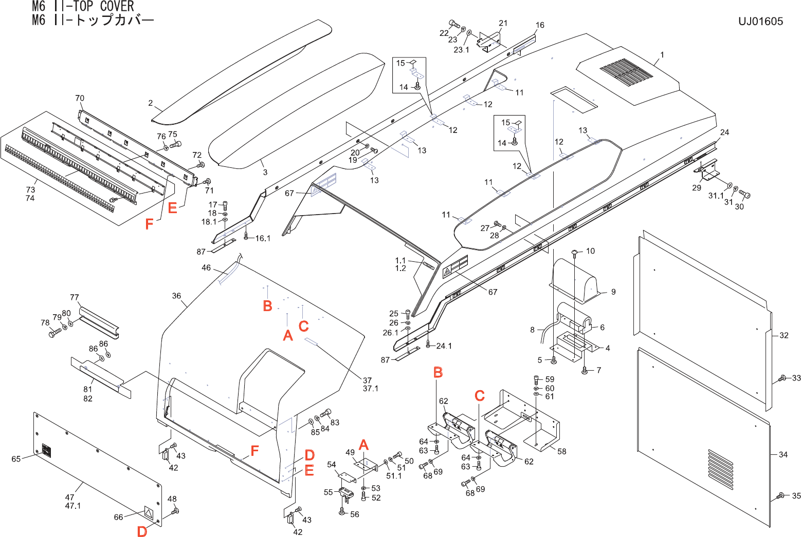 M6II-TOPCOVER M6 II- トップカ バー UJ01605 No. Drg.No.&CodeNo. Q TY Description Rating Materials Remarks 番号 図番 &コード 番号 個数 品名 規格 材質 備考 1 PH01239 1 COVER,TOP カバー トッ プ OT 1.1 PX08640 1 SEAL,BARCODE シ ール バーコ …