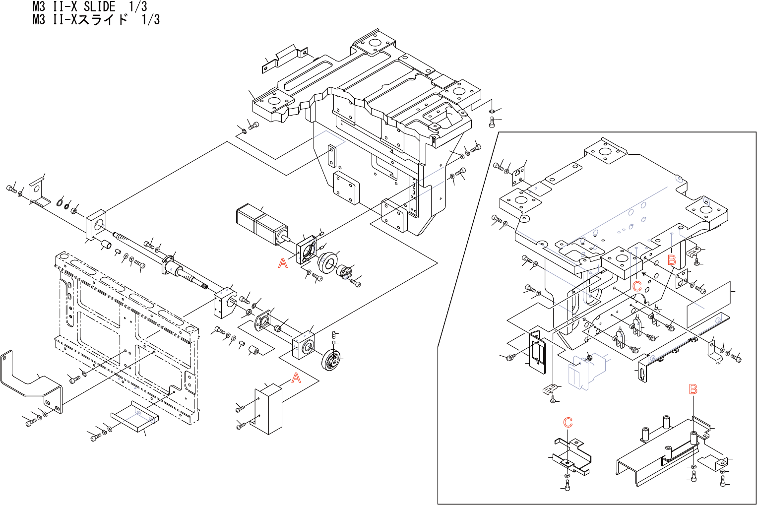 M3II-XSLIDE1/3 M3II -Xスライ ド1 /3 US01315 No. Drg.No.&CodeNo. Q TY Description Rating Materials Remarks 番号 図番 &コード 番号 個数 品名 規格 材質 備考 1 PT01727 1 SLIDE,Y-AXIS スライ ドY 軸 OT 2 H5289A 16 BOLT,HEXSOCKET …