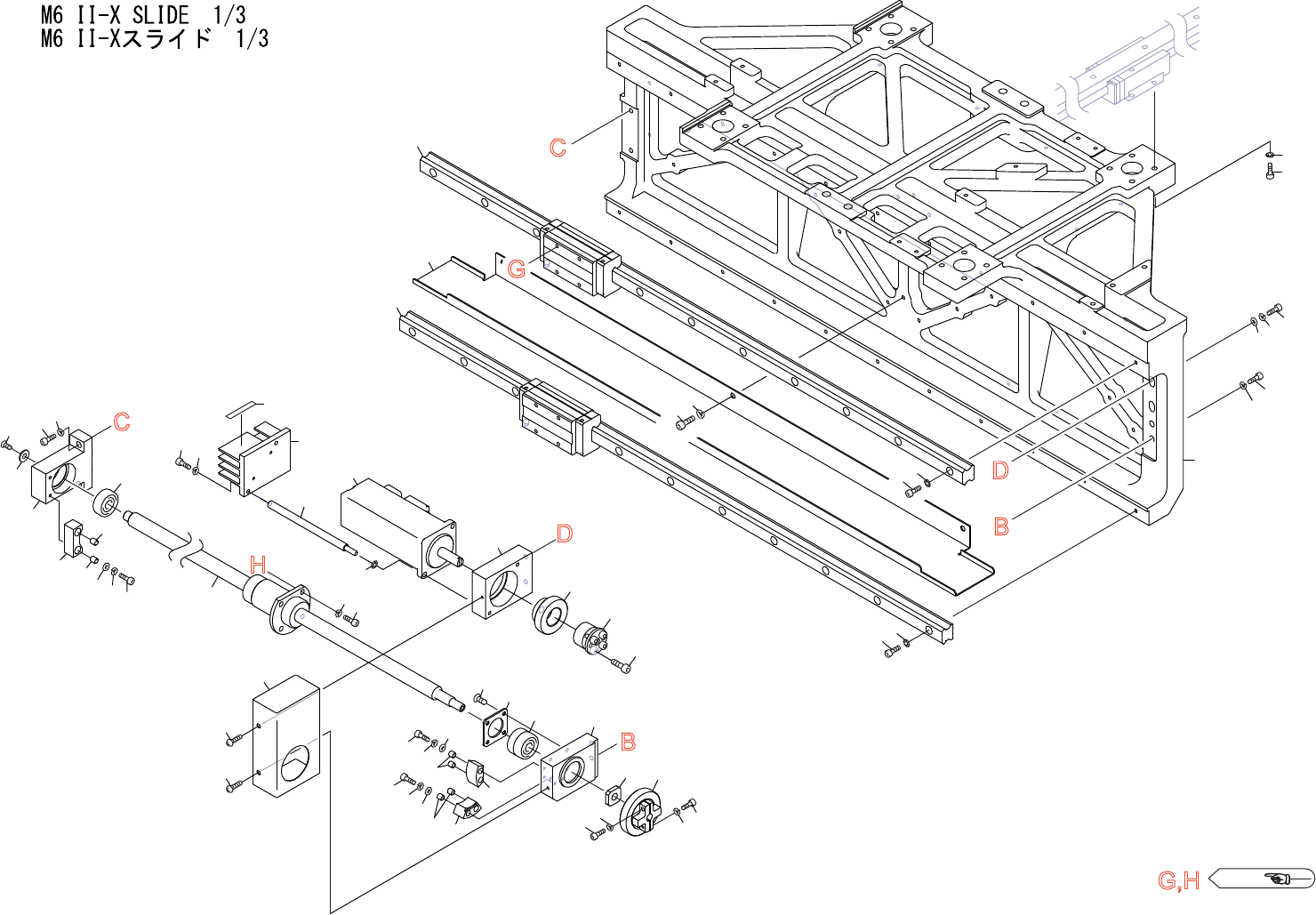 M6II-XSLIDE1/3 M6II -Xスライ ド1 /3 US01512 No. Drg.No.&CodeNo. Q TY Description Rating Materials Remarks 番号 図番 &コード 番号 個数 品名 規格 材質 備考 2 PT01686 1 SLIDE,Y-AXIS スライ ドY 軸 FE 2.1 H5290A 16 BOLT,HEXSOCKE…