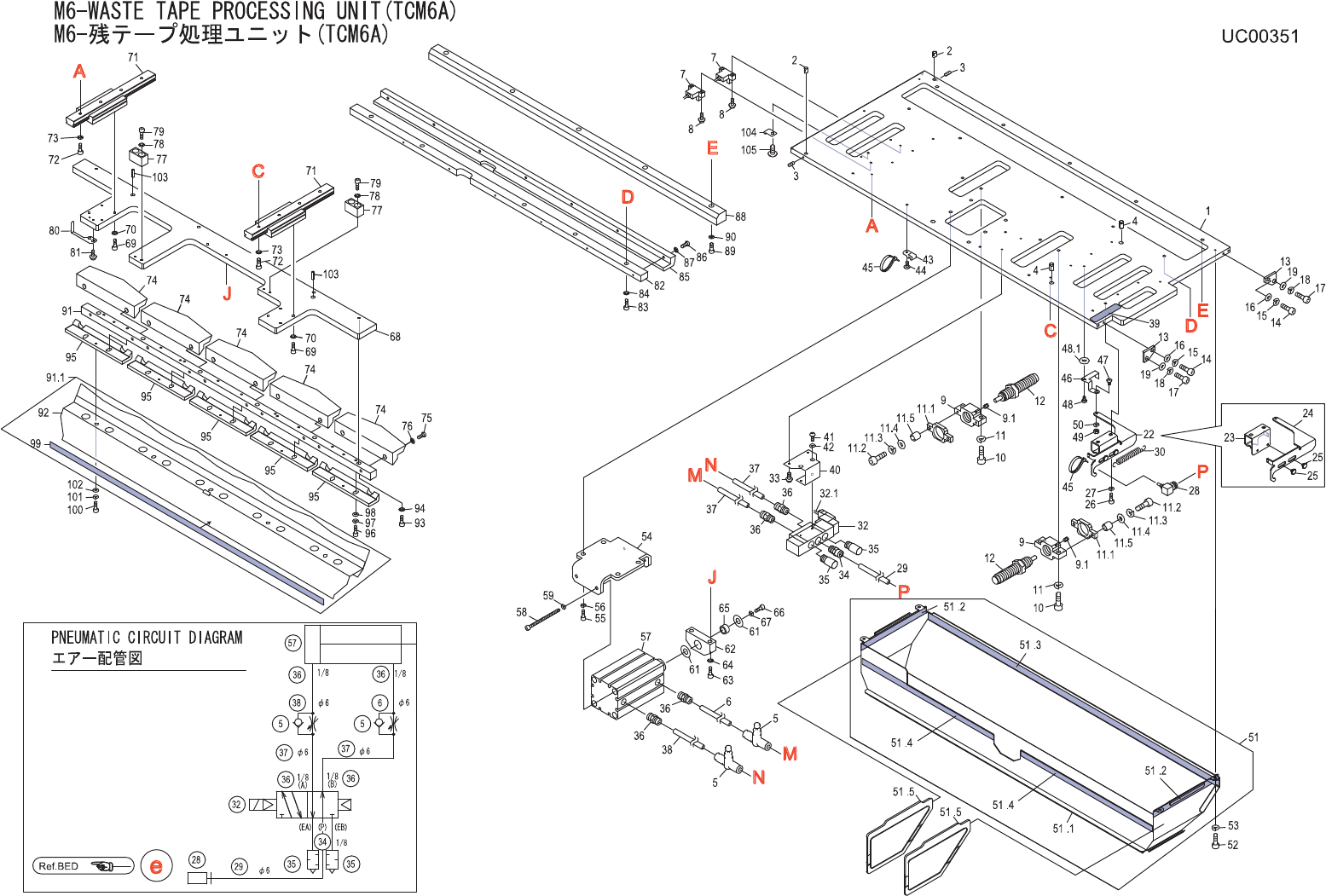 M6-WASTETAPEPROCESSINGUNIT(TCM6A) M6 -残テ ープ処理 ユニッ ト(TCM6A ) UC00351 No. Drg.No.&CodeNo. Q TY Description Rating Materials Remarks 番号 図番 &コード 番号 個数 品名 規格 材質 備考 1 PM001N3 1 PLATE プレー ト F E 2 PM04433 2 PIN …
