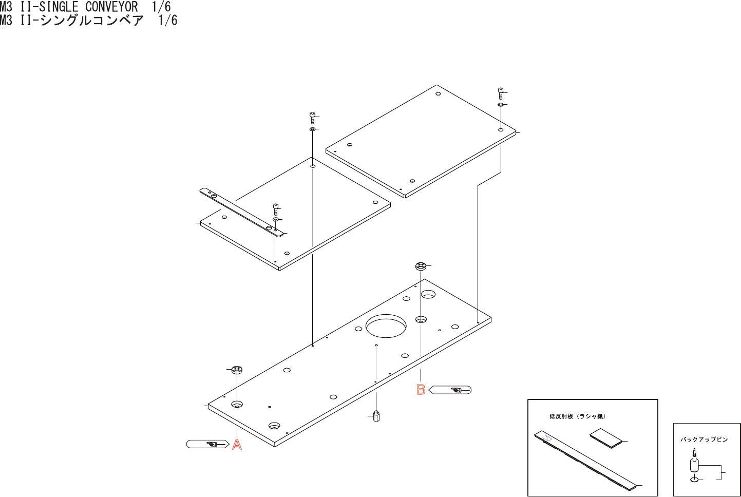 M3II-SINGLECONVEYOR1/6 M3 II- シングル コンベ ア1/6 UQ04110 No. Drg.No.&CodeNo. Q TY Description Rating Materials Remarks 番号 図番 &コード 番号 個数 品名 規格 材質 備考 1 PM055G3 1 FRAME フレー ム A L 2 H20231 1 PIN,STOPPER ピン …