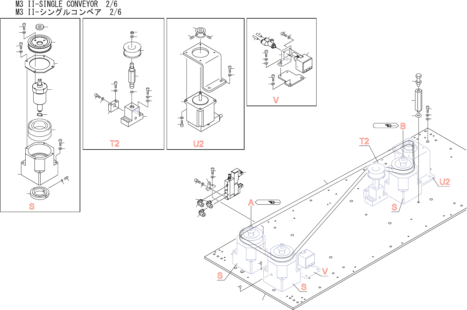 M3II-SINGLECONVEYOR2/6 M3 II- シングル コンベ ア2/6 UQ04110 No. Drg.No.&CodeNo. Q TY Description Rating Materials Remarks 番号 図番 &コード 番号 個数 品名 規格 材質 備考 1 PM057G3 3 HOUSING ハウジ ング FE 2 H5296A 12 BOLT,HEXSOCK…