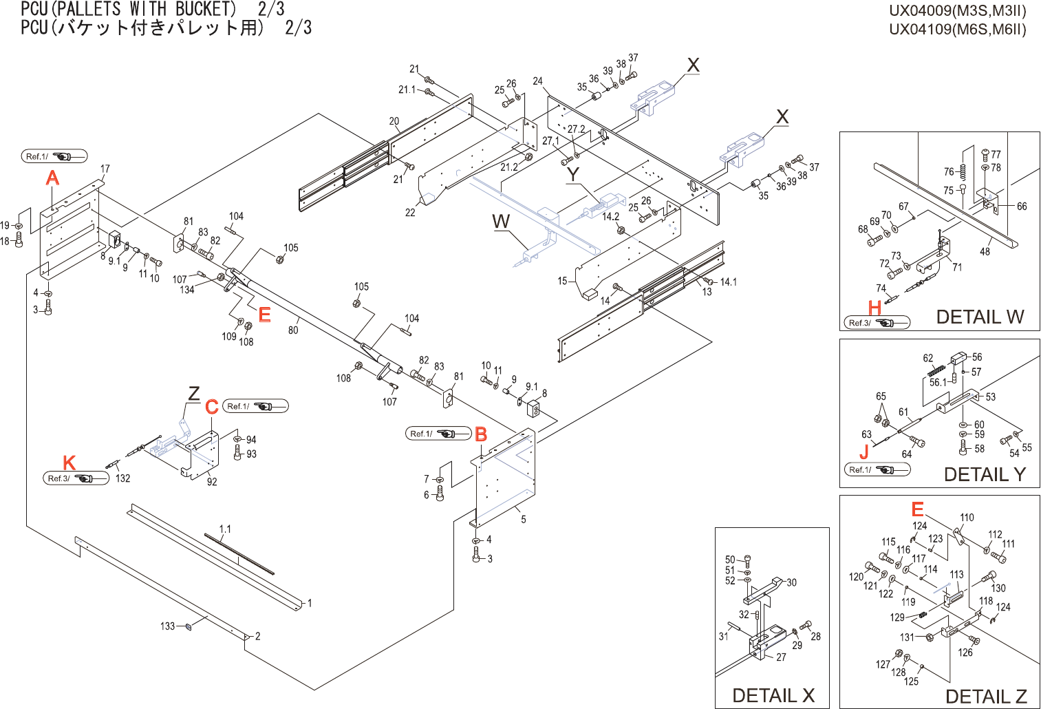 PCU(PALLETSWITHBUCKET)1/3 UX04009(M3S,M3II) PC U(バケ ット付 きパレ ット用) 1/3 UX04109(M6S,M6II) No. Drg.No.&CodeNo. Q TY Description Rating Materials Remarks 番号 図番 &コード 番号 個数 品名 規格 材質 備考 74 H5426L 2 B OLT,HEX…