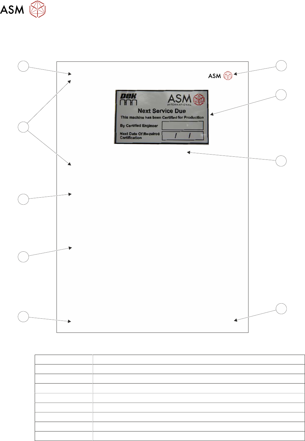 or substrates. Only ASM AS spares must be used to service the machine.