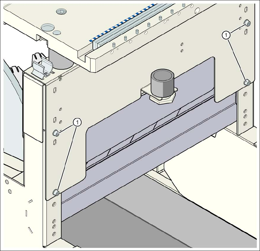 用户手册 SIPLACE D1i/D2i 4 安装和试运行 源自软件版本 SR.605.03 SP2 2012 年 10 月 中文版 4.4 根据 PCB 传送导轨 高度调整料车 223 4.4.7 950 mm PCB 传送导轨高度 4 图 4.4 - 8 料车: PCB 传送导轨高度 950 mm - 后视图,六角套筒螺钉和检 验孔的位置 (1) 六角套筒螺钉 M6x12 和垫圈 ( 4x 在后面板上) (2) 检验孔高度为 830…