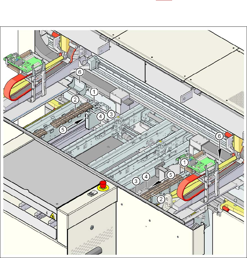 每个吸嘴交换器 (见图 6.1 - 2,第 259 页)都被固定到废料带导槽上。