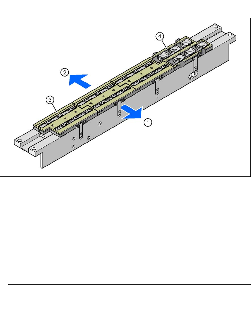 每个吸嘴交换器都被固定到废料带导槽 (见图 6.1 - 2 和 6.1 - 3,第 259 页)上。