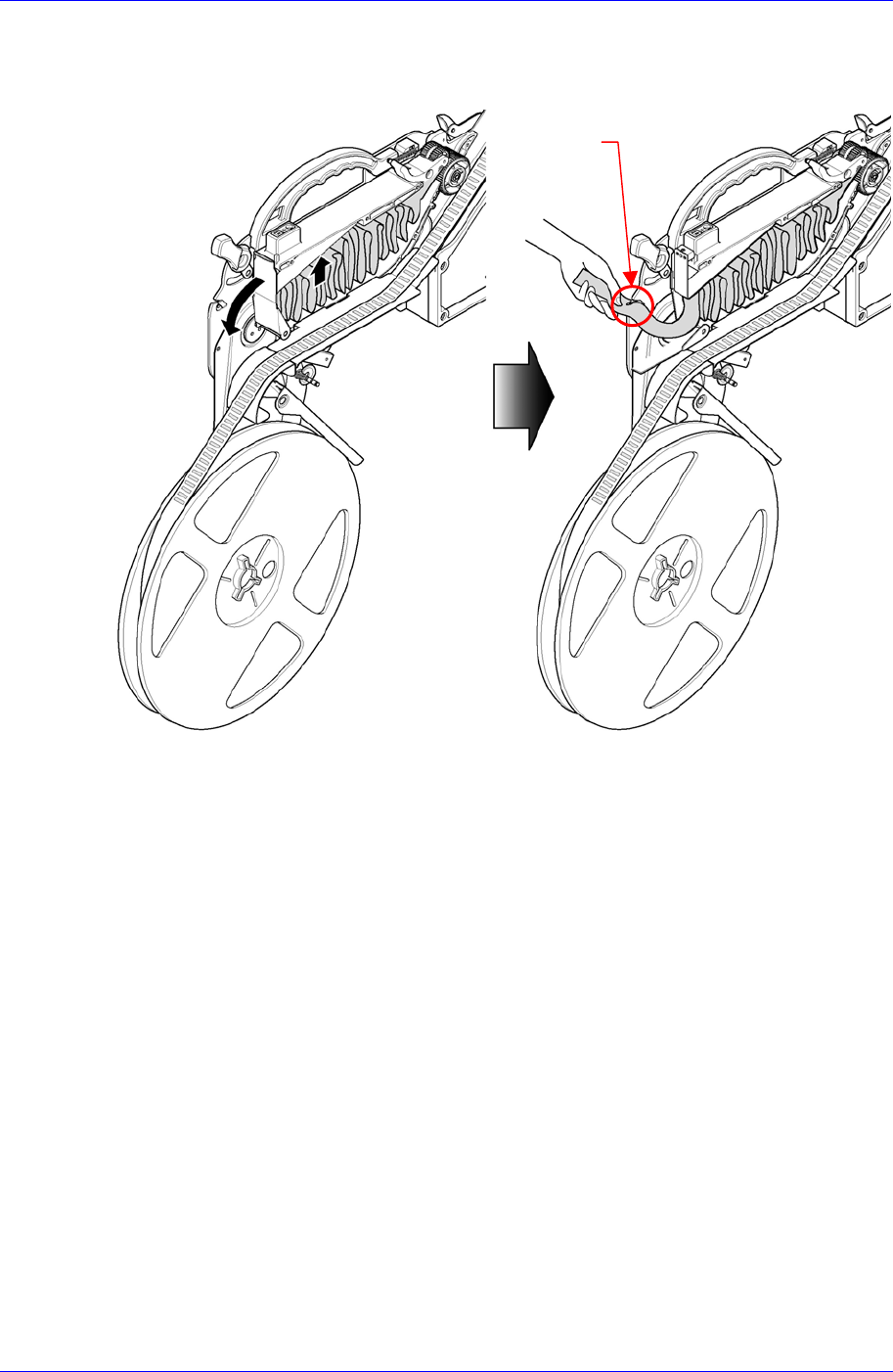 Figure 2-17. Method of fixing upper cover tape in the roller and gear (SM 24mm~88mm tape