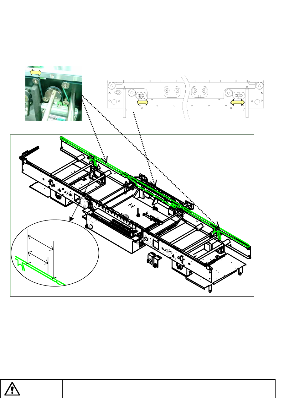 ② 按 1)相反的顺序转动 [ A ] 部 的 [传送滑轮],加强传送带的张力,当这 2 个记号达