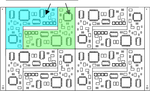 ◆多电路非矩阵板:与多电路矩阵板基板相同,是在一块基板上配置多个相同的电路,但间隔