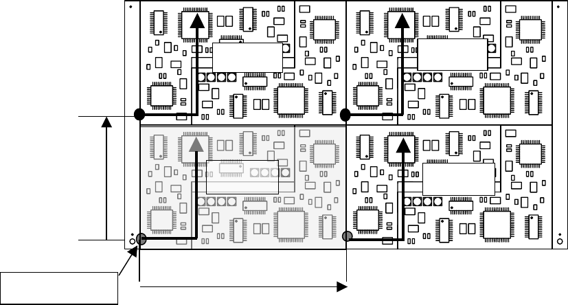 第 4 章 生产程序编辑 Rev03 4-3-3-2-3 多电路板 一块基板配置多个相同电路(亦称基板)的基板叫多电路板。 这种情况下,贴片数据只制作一个电路 (称为“基准电路” )的数据, 输入基板数据电路 配置(电路间间距、电路数等)信息。 多电路板包括多电路矩阵板和多电路非矩阵板。 间距 X 制作“基准电路”贴片数据,输入“电路数目”与“电路 间距”信息,完成基板总 体的贴片数据。 间距 Y 基准电路 第 2 电路 第3电 路 第…