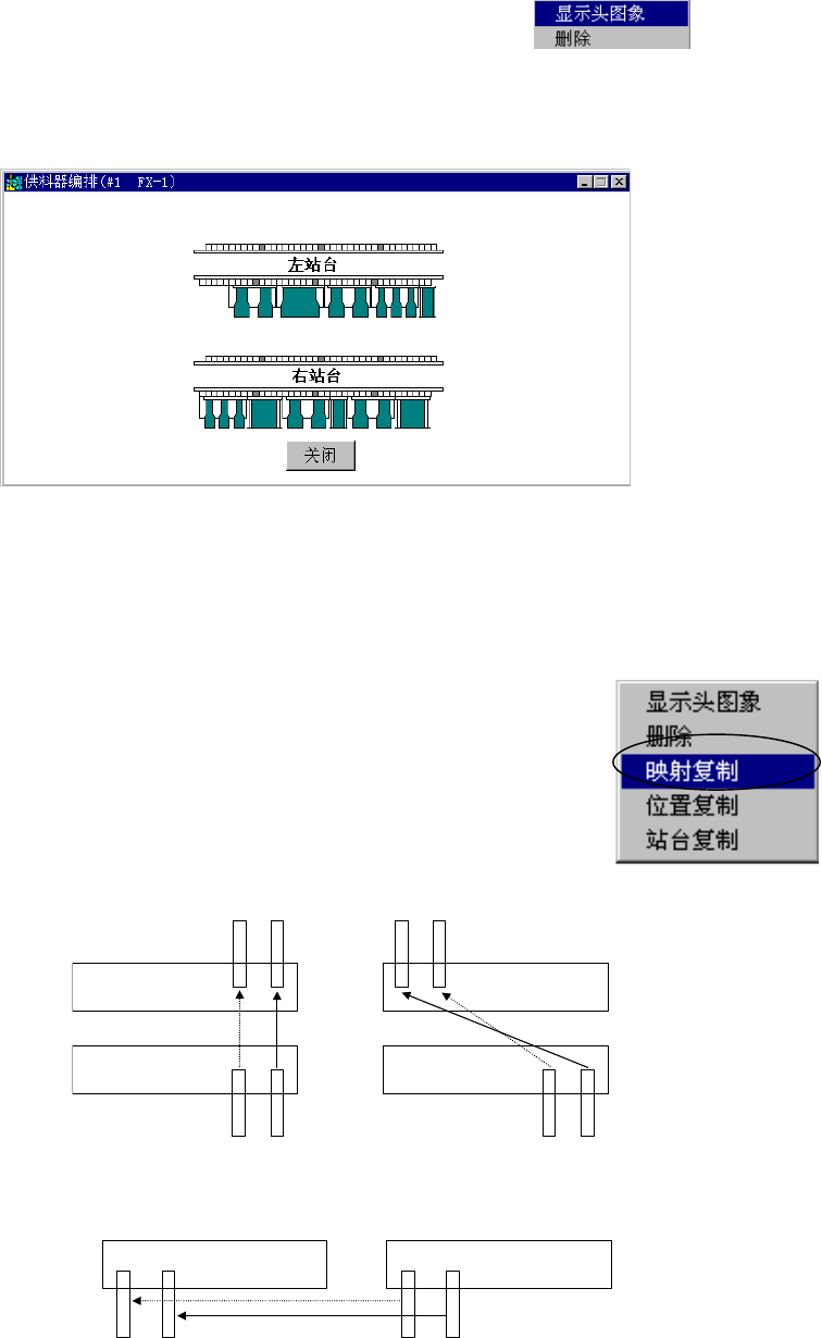 ●映射复制为:在前后的孔编号相对的位置上复制送料器。