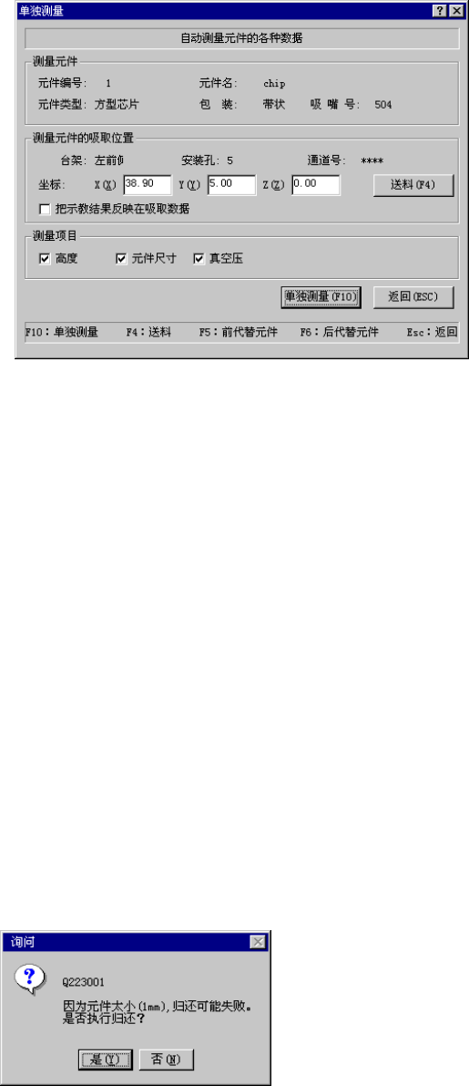测量项目因元件包装方式而异,1mm 以下的元件,将显示提示询问:测量后,元件是归