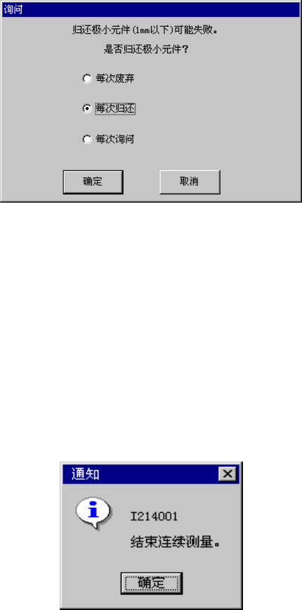 连续测量开始后,立即显示如下画面询问:经测量,已知的 1mm 以下的元件如何处理?