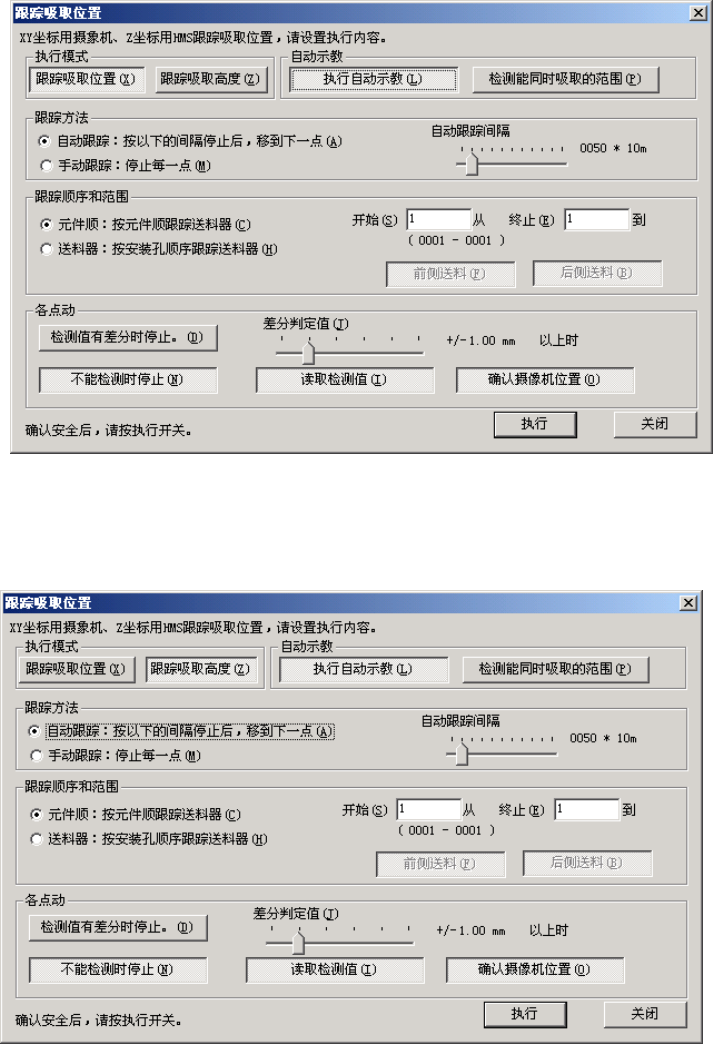 按一定间隔,用摄像机逐项跟踪贴片位置。仅在下面设定的「自动跟踪间隔」时停止,