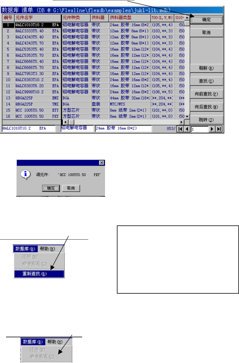 ③显示出数据库清单。选择 元件名字、单击「确定」
