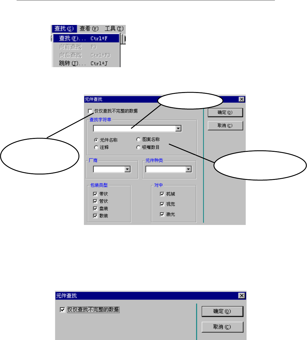 4) 如果要查找未完成的元件数据,可单击「仅仅查找不完整的数据」。显示如下画面后,单