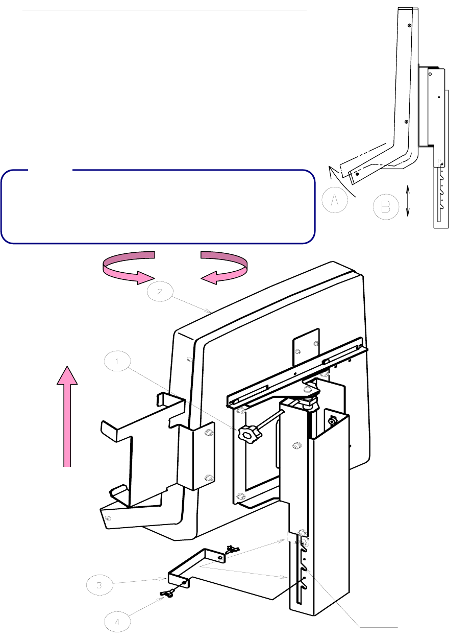 后,即可按 B 上下方向调整高低,固定时请对准 4 个槽沟或者