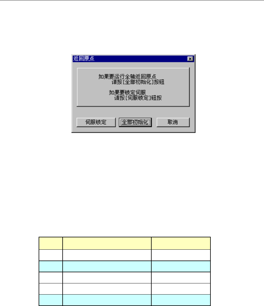 「全部初始化」 :全轴返回原点。